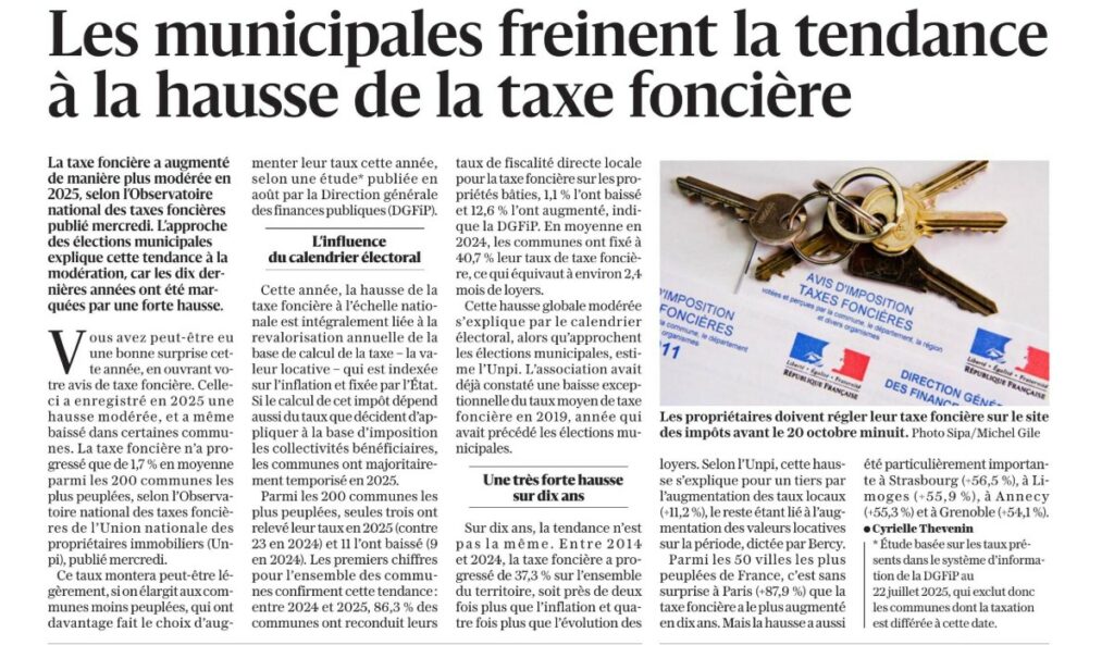 Taxe foncière : une flambée «intenable pour les propriétaires» dans la revue Capital 15/10/25